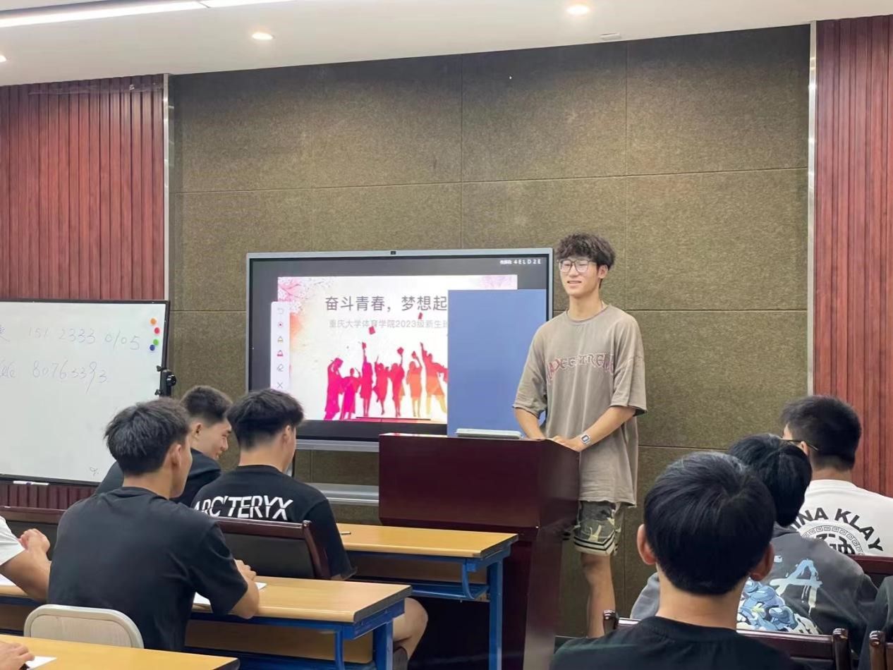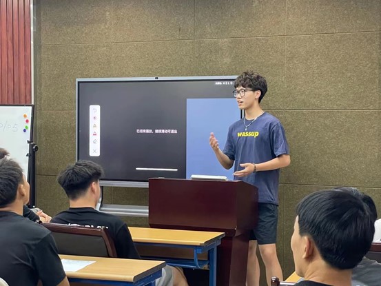 然后是同学们的自我介绍环节,以便于新生们能更好的互相认识,互相帮助。每位同学都上台介绍了自己的姓名、家乡、高中专项以及个人爱好,有的同学也会讲讲自己与体育的故事。