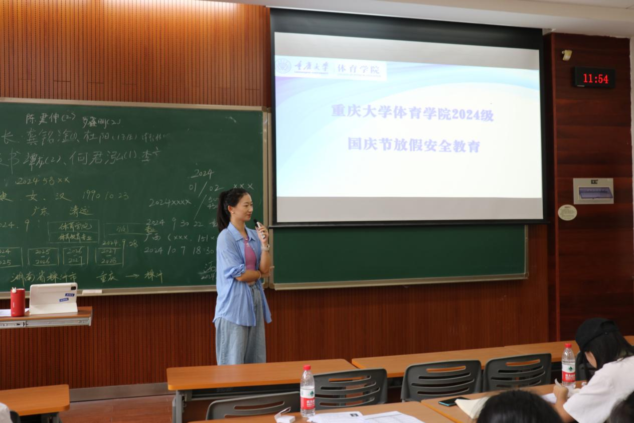 在虎溪校区D1149召开了国庆节黄金周安全教育班会。本科2024级全体学生参加。班会由学院团委书记、本科生辅导员汤婕老师主持。