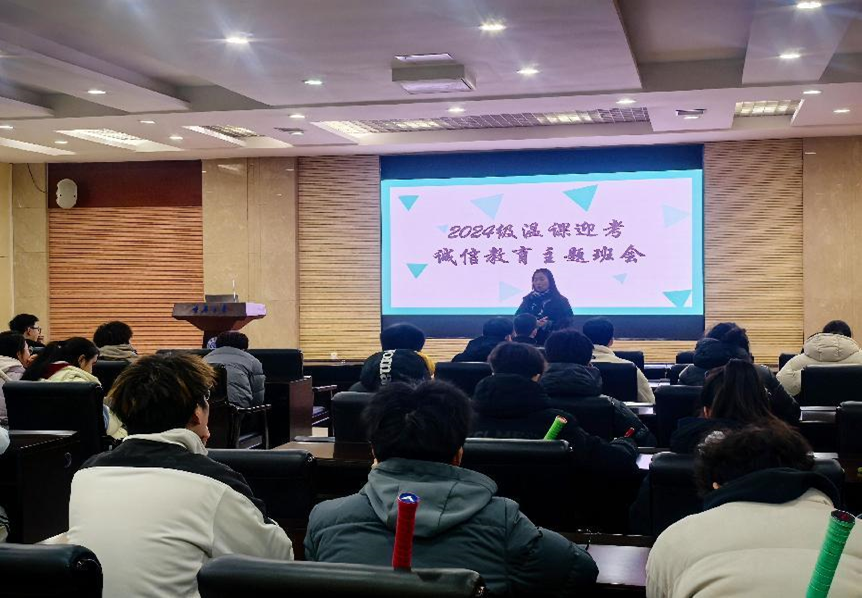 在虎溪DZ125召开“温科迎考,诚信教育”主题班会。学院党委副书记李永、体育系主任娄方平出席,2024级全体本科学生参加。此次班会由辅导员汤婕主持。