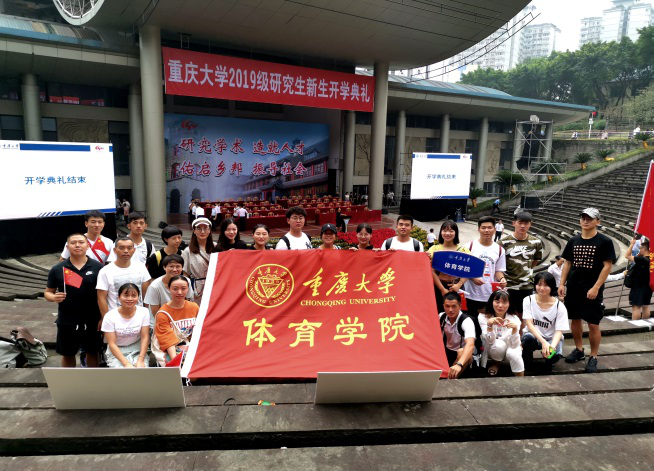 老师和2019级研究生全体新生在风雨操场合影留念。