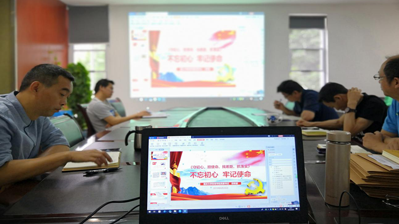 邱荣富书记首先以“不忘初心,牢记使命”为题给大家解读了开展主题教育的重大意义、总要求、根本任务和具体目标。接着结合学院和自身工作实际,阐述了应如何践行“守初心、担使命、找差距、抓落实”这个总要求。表明只有努力学习马克思主义,才能坚定理想信念,不忘初心、牢记使命。要坚持学思用贯通、知信行统一,推动学习贯彻习近平新时代中国特色社会主义思想往深里走、往实里走、往心里走。要把学习成效体现到政治能力的提高上,旗帜鲜明讲政治,增强“四个意识”、坚定“四个自信”、做到“两个维护”。要把学习成效体现到主观世界的改造上,净化思想灵魂、提升精神境界,坚守共产党人精神高地。要把学习成效体现到实际工作的推动上,学在深处、谋在新处、干在实处,以实干实绩迎接90周年校庆,向新中国成立70周年献礼!