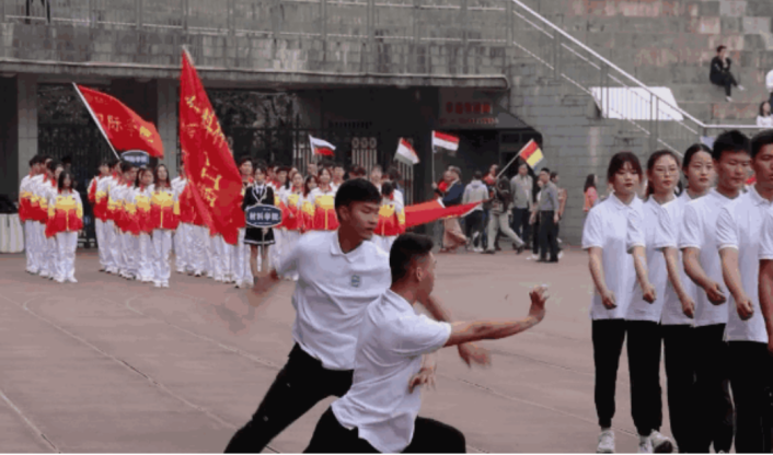 方阵检阅中,国旗班英姿飒爽、气宇轩昂,用自己的坚持和汗水诠释了重大学子的风采。恰同学少年,风华正茂,伴随着雄壮的乐曲,各学院方队依次入场,他们的服饰风格不一,独具特色,努力把自己最好的一面展现给观众们。