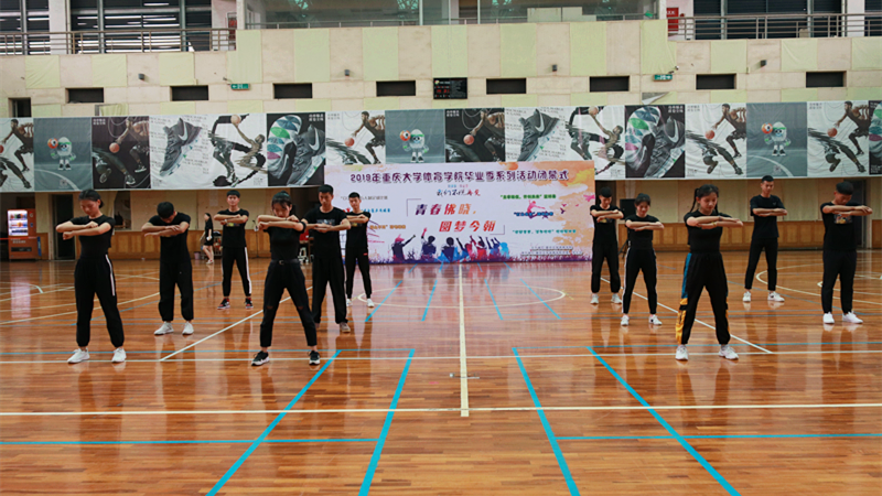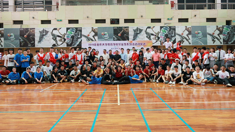 毕业季系列活动闭幕式,活动内容为本科毕业生与研究生毕业生篮球友谊赛,本科每个年级规定与自编啦啦操比赛,各团体活动的颁奖,毕业年级同学的节目表演以及欢送仪式。学院党委书记邱荣富、院长许定国、党委研工部副部长陈大勇、党委学工部副部长胡小华、学工部学生管理科科长袁鈺以及学院在家领导、部分老师和全体学生参加了此次活动。