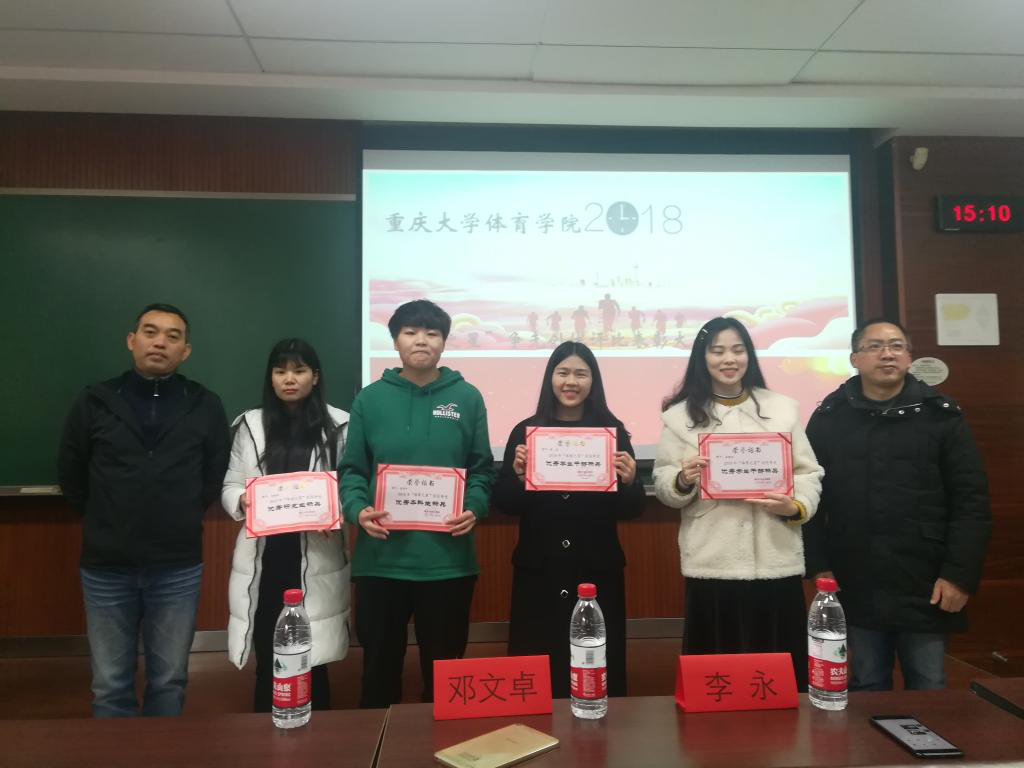 为贯彻落实全国教育大会精神,进一步推进“两学一做”学习教育常态化、制度化,营造良好的学习氛围和友善的生活环境,激发全院师生的工作和学习积极性,2019年3月7日下午3:00,禁忌书屋 在虎溪校区第一教学楼1350教室召开了2018年争先创优“体育之星”表彰大会,对在2018学年学院表现优秀的本科和研究生班集体、先进个人、先进寝室进行了表彰。禁忌书屋 研三和大三、大四的同学代表以及2017级和2018级的本科生和研究生全体同学参加了表彰会,禁忌书屋 党委副书记李永、虎溪学工办副主任邓文卓出席会议,会议由学院本科生辅导员汤婕老师主持。