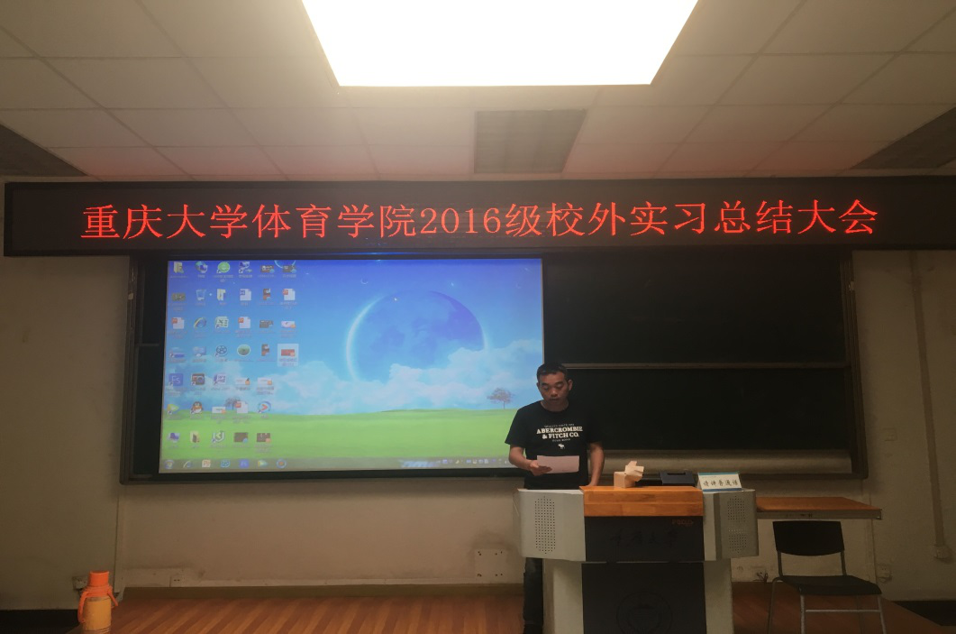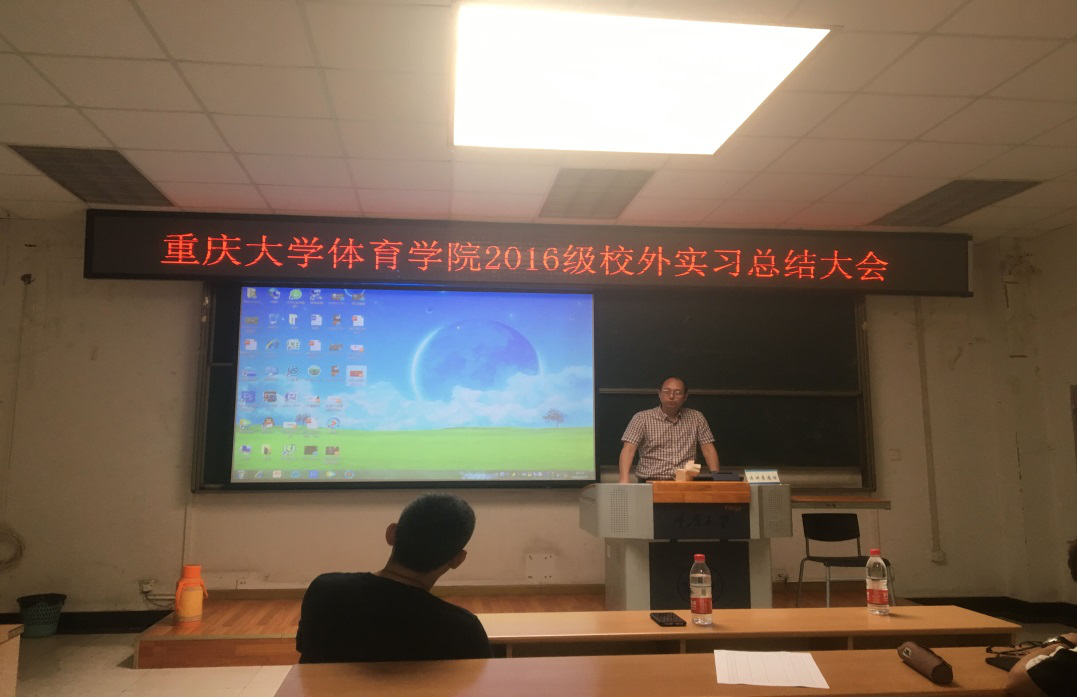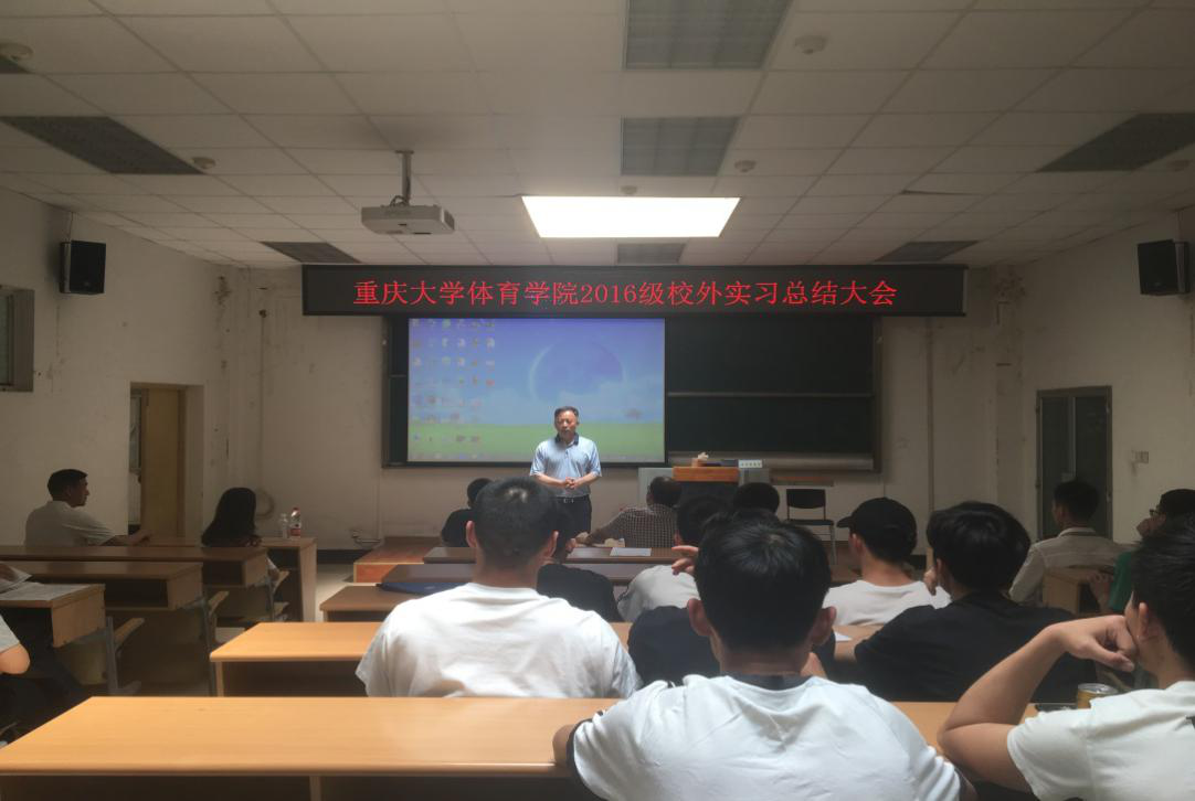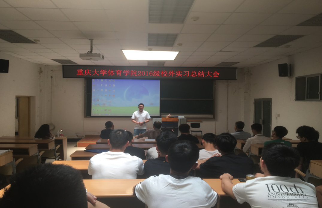 4月25日下午,禁忌书屋 2016级学生校外实习总结大会在学院阶梯教室举行。学院院长许定国、党委副书记李永、副院长落云柯、院团委书记汤婕及2016级本科生参加了本次会议。会议由学院体育教育系主任娄方平主持。