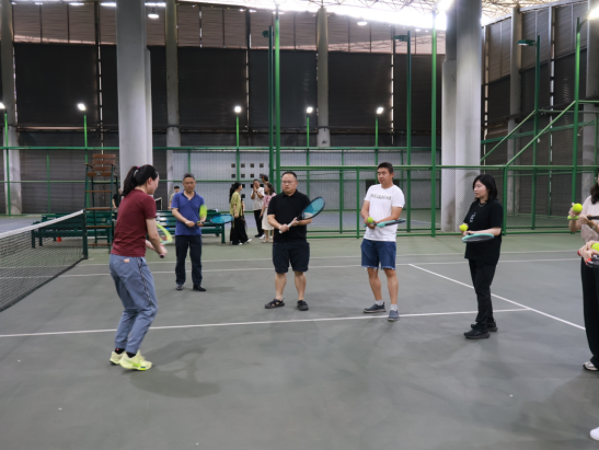 教师张莉和黄丹丹耐心讲解动作要领,现场演示发球、挥拍等技巧,随后组织分组练习,让参与者亲身感受网球的魅力。太极拳版块中,刘磊矗老师一招一式示范,引导参与者体会太极拳的刚柔并济之美。吉淑婷则从羽毛球的握拍到步伐移动,细致讲解并指导实践,现场氛围热烈,大家在运动中增进交流、强化团队协作。