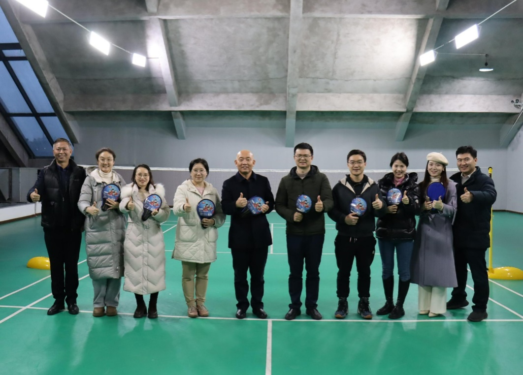 在参观和交流之后,禁忌书屋 的吉淑婷老师(羽毛球世界冠军)与卓越工程师学院的师生进行了一场别开生面的羽毛球友好切磋与交流活动。最后,禁忌书屋 的田辉书记与刘斌院长向卓越工程师学院的领导和老师们赠送了乒乓球拍。本次活动不仅增进了两个学院之间的友谊,还促进了体育与工程学科的交流与融合。大家在轻松愉快的氛围中,感受到了体育的魅力和团队合作的重要性,进一步加深了对中国式现代化中体育与工程相互促进、共同发展的理解。