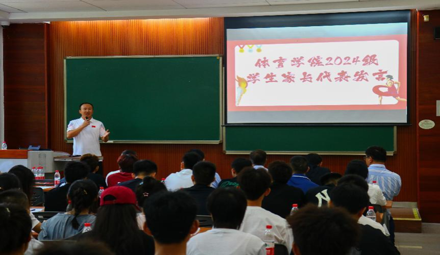 “携手共进体育新征程”2024级本科生研究生及家长见面会,于9月7日上午10点在虎溪校区D1151教室如期举行。学院党委书记田辉,院长刘斌,党委副书记李永,副院长潘建华,研究生培养办公室主任黄诚胤,研究生教务老师刘述芝,兼职研究生辅导员李莎,学生家长家属代表,以及全体2024级本科生和研究生参加。见面会由学院团委书记汤婕主持。