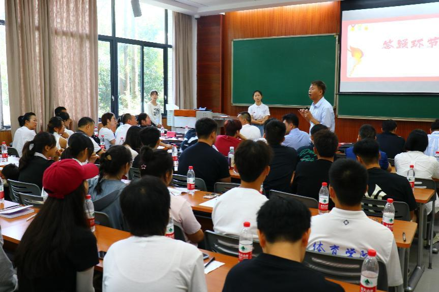 在读学生代表郭添文,本科新生代表谭龙,研究生新生代表杜明洋三位同学相继发言,在他们的发言里,师兄分享了自己的宝贵经验,展现了体院学习生活的丰富多彩和无限可能;刚入学的新生充满了对大学生活的展望,对未来生活的憧憬;考研成功的研究生则分享了自己“轻舟已过万重山”的喜悦。