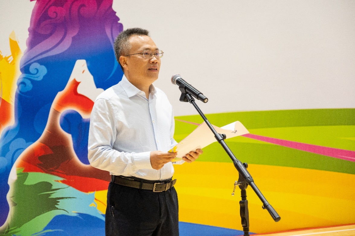 张欣致开幕词,他指出2024年大学生羽毛球比赛是重庆市全民健身的一次精彩展示,也是体教融合发展中的一个亮丽剪影,更是各高等院校精神风貌的一次激情呈现。同时,以此次羽毛球比赛为契机,推广普及重庆市的羽毛球运动,提升羽毛球运动水平,进一步宣传竞技体育精神,倡导健康有益的生活方式,使更多同学投身到体育锻炼中。