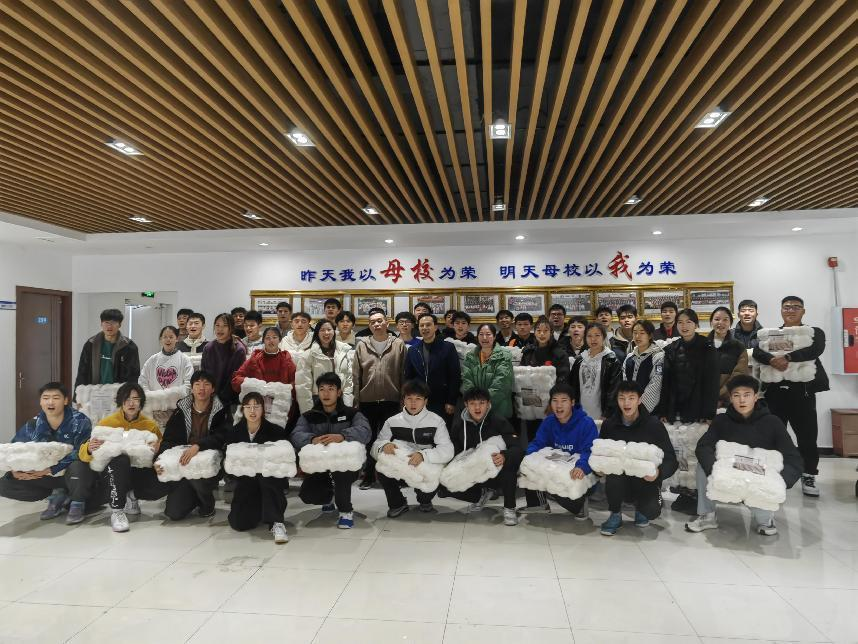 随后,明兴建书记和李永副书记为45名同学发放绒毯,让同学们在寒冬中感受到学院温暖的关怀。