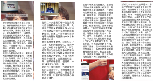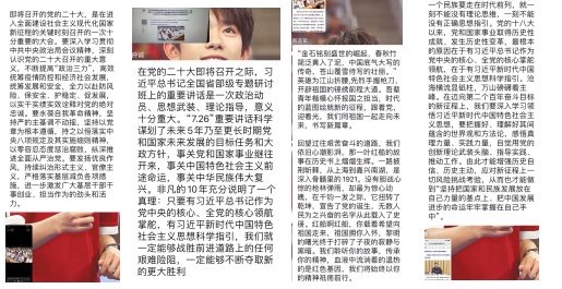 “少年强,则国强;少年志,则国志。”时代的警钟已经敲响,中国的发展需要一代又一代与时俱进的青年。我们在祖国的襁褓中茁壮生长,那么也需要成为参天大树来荫庇她。我们要让社会成为一个自由、平等、公正、法治的天地,让祖国成为一个富强、民主、文明、和谐的中国。喜迎党的二十大,奋进新征程,让祖国在新世纪的照耀下,向阳而生,愈加欣欣向荣、生机勃勃,愈加光明璀璨和熠熠生辉。