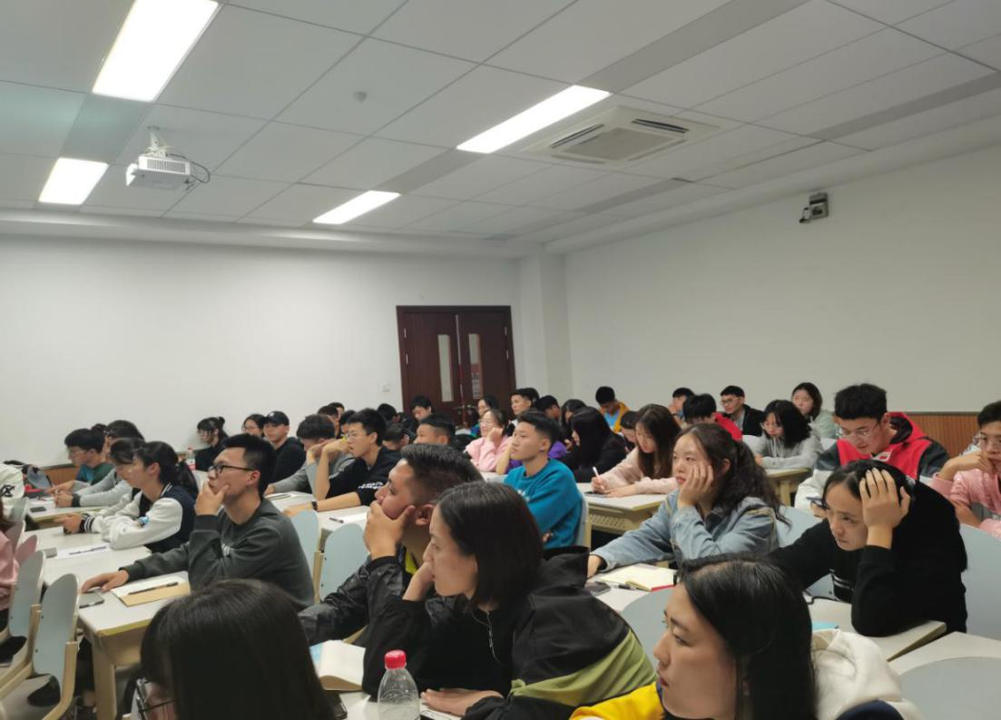 分享会座无虚席,气氛十分活,兰德群结合自身从实际出发,绘声绘色地为大家传授宝贵的学习和工作经验,同学们在仔细的学习和聆听之后,也在后续的互动问答环节也积极进行交流讨论。