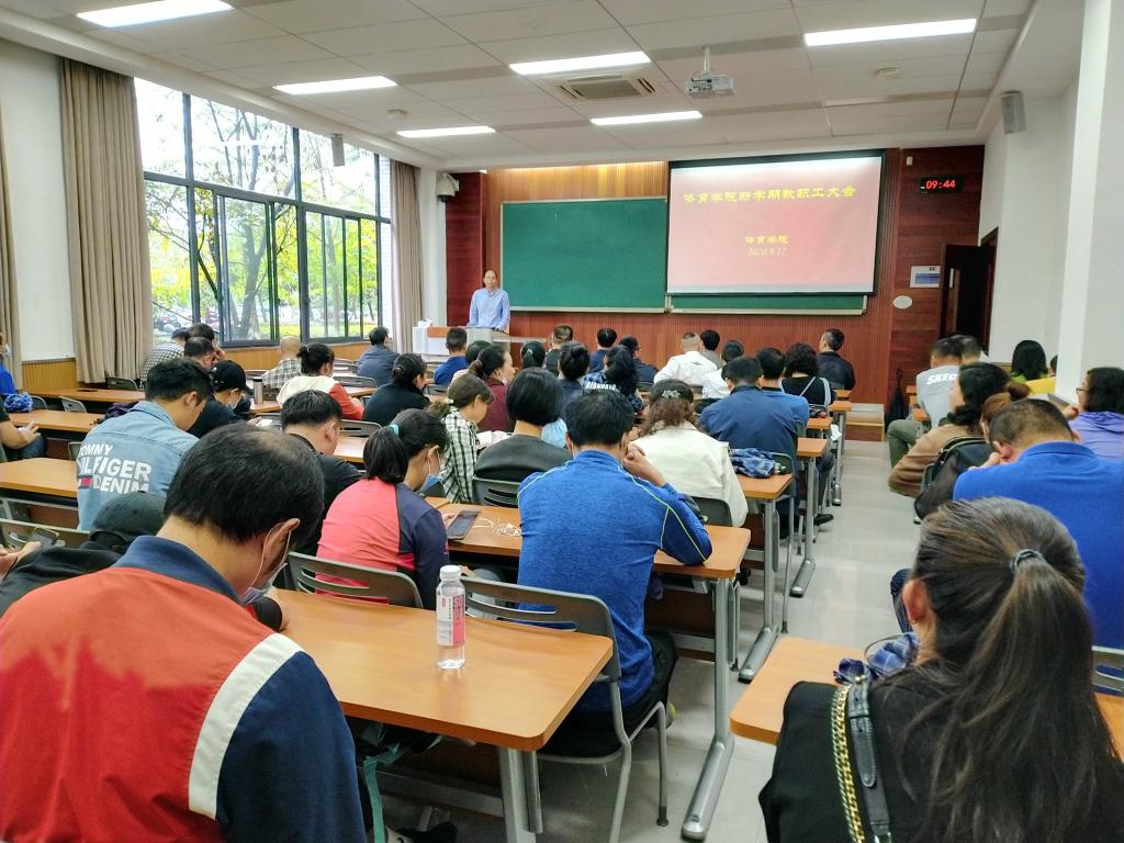 在虎溪校区D1146教室召开了新学期全体教职工大会。会议由学院党委书记邱荣富主持。