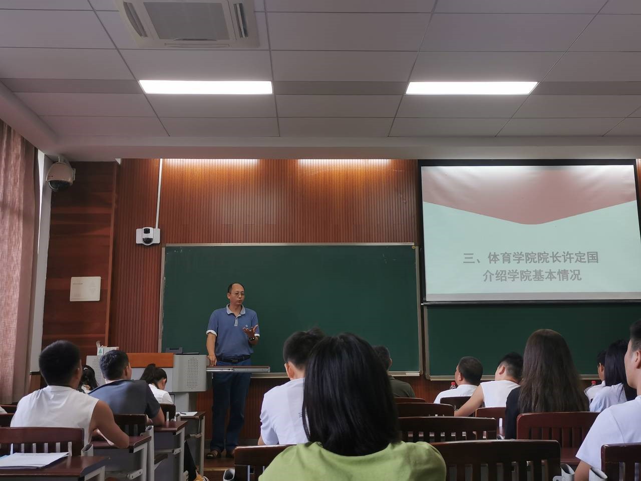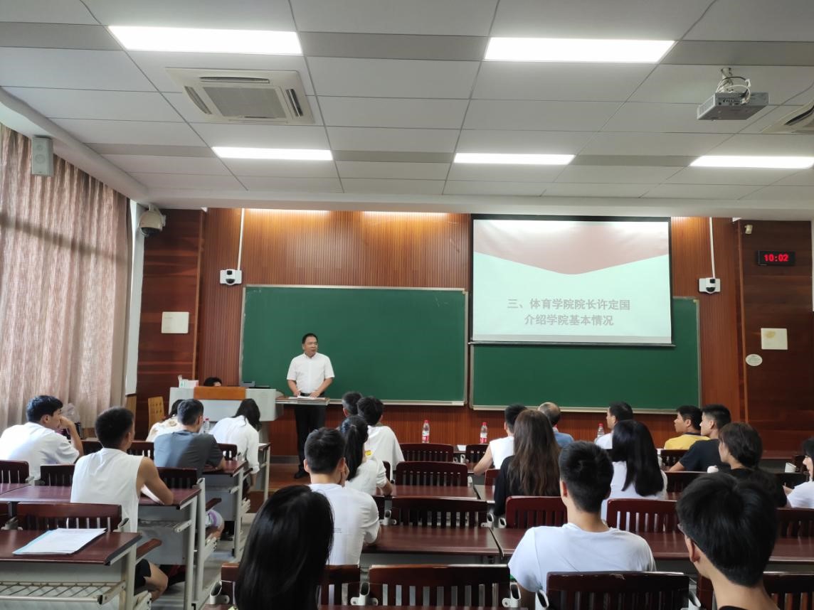 教师代表向祖兵分别发言,表态和期望:一要让自己成为一名“文武双全”的体育人,二要好好利用图书馆、体育场进行学习和锻炼,三要努力做一名德才兼备、胸怀大志的体育人。