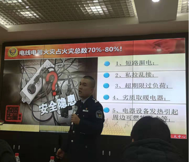 蒋教官通过真实的火灾案例讲解了防范火灾的重要性,通过一个个真实的火灾案例,深入浅出的讲述了消防安全的重要性。介绍了火灾中自救逃生的方法以及灭火器的种类、操作使用方法等一系列防火安全知识。