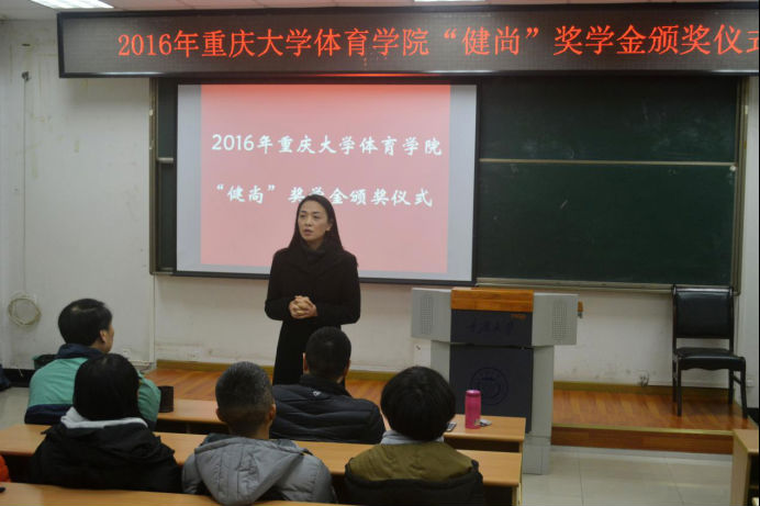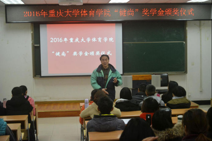 院长胡红,首先以生动、幽默的方式为本次颁奖仪式致辞,他表达了对全体学生未来发展的期待,同时希望大家认真体会“健尚奖学金”内在的涵义,不仅要有健康的体魄还要有高尚的品格。