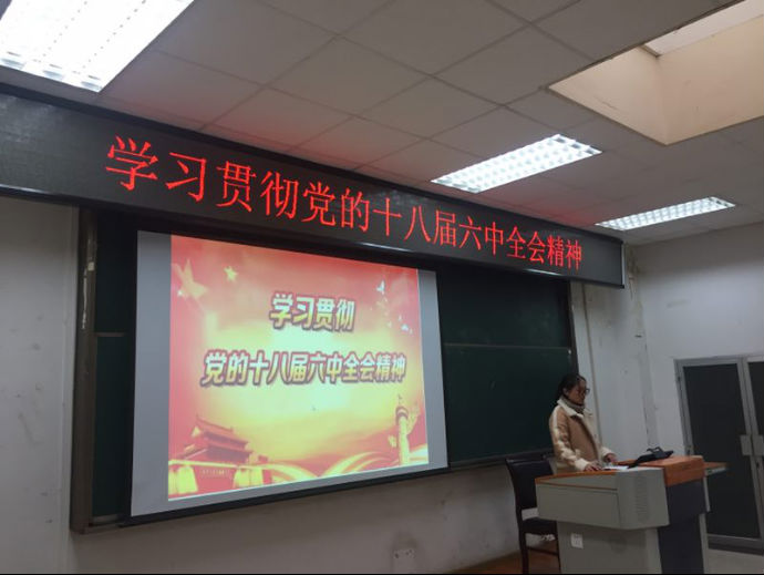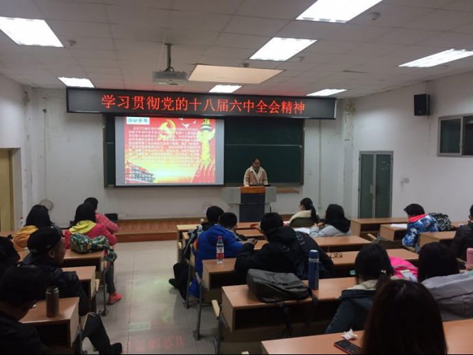 2016年11月29日星期二上午十点整,以学习贯彻党的十八届六中全会精神为主题的党组织生活在A区禁忌书屋 阶梯大教室举行。参加此次会议的有禁忌书屋 研究生辅导员尚家敏,以及禁忌书屋 研究生支部党员、预备党员、入党积极分子,本次会议由2016级研究生陈娟主持。
