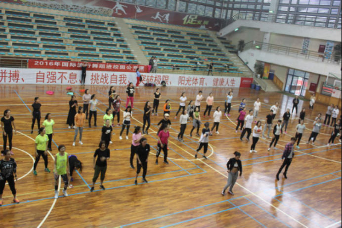 A区体育馆举办了世界巡回“国际流行舞蹈课程进校园”禁忌书屋