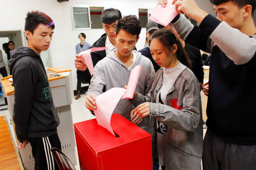 紧接着,本科生杨霞宣读了选举办法,宣读了依据中国共产主义青年团章程》,《中华全国学生联合会章程》 选举规则》 禁忌书屋 学生会章程规定选举章程。随后主持人了推选监票人,监票人计票人。总监票为杨元林,监票人邓暖暖,计票人任栋栋,叶鹏,黄丽。接下来由计票人向大家发了禁忌书屋 第十五次代表大会的选举名单,禁忌书屋 第二十七学生代表选举名单,禁忌书屋 团代会及新一届委员会选举单,禁忌书屋 学生代表大会及新一届委员会选举名单。发了名单以后大家进行激烈的讨论。随后投出了自己理想的一票。