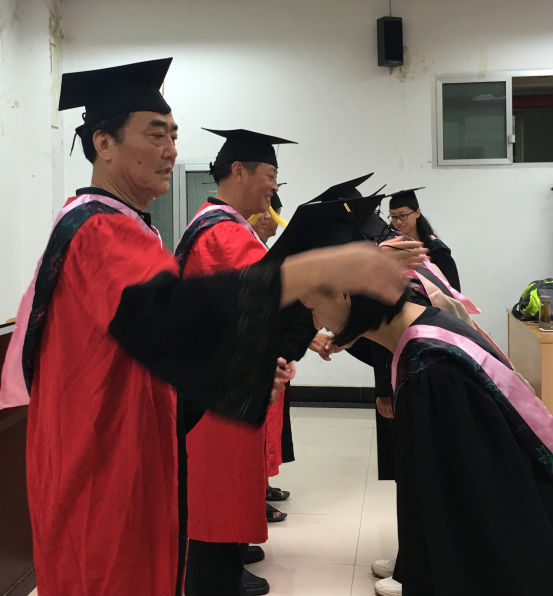 的学子们赠言了三句话让大家带走:“学习不能断;锻炼不能停;朋友必须交。”越是寓意丰富的话语越是简单质朴,毕业生们深受启发。随后四位教授开始一一为毕业生们进行拨穗。
