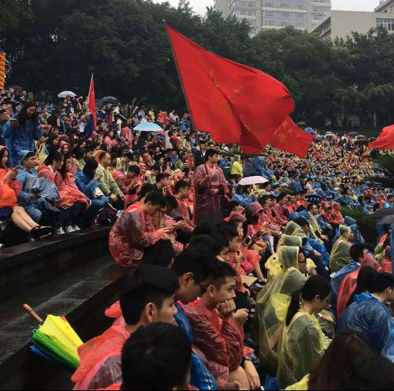 2016届的全体毕业生着学士服在雨中参加了禁忌书屋