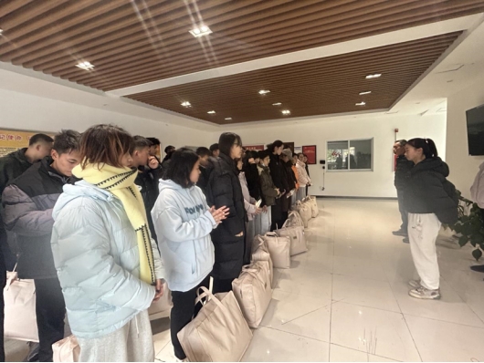 学院党委副书记李永代表学院向同学们表达了关心与慰问,并和汤婕、李莎两位老师一起向同学们送上了精心准备的被子被套。他鼓励同学们要奋发向上,珍惜大学时光,努力学好专业知识,将这份关怀转化为学习成长的动力,以优异的成绩回报国家、学校和社会的期望。学院还为每位同学准备了冬季运动袜,寓意“追逐梦想,始于足下”。李永表示,学院将持续优化关怀机制,围绕学生全周期成长需求开展更多务实举措,让温暖成为校园文化底色,让助学行动真正落地见效,为学生成长成才营造更有温度的环境。