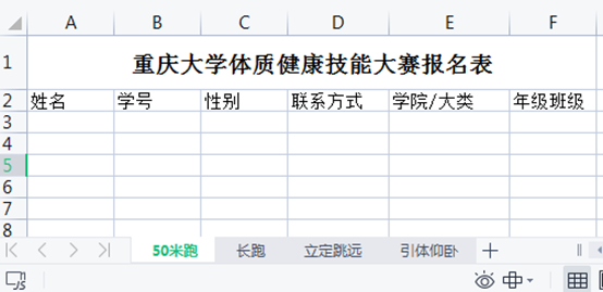 附件:1.本科生体测技能大赛报名表