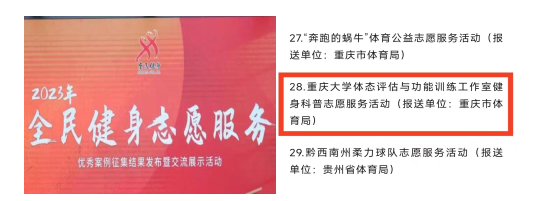 此外,CQUPFS还结合科研项目,将健身科普推向社会。如“关节功能及动作模式的完善对中体考项目成绩影响的实证研究”、“低中龄老年人运动处方的设计与应用研究”“足踝功能训练对45-59岁中年人平衡能力及跌倒风险的影响”等。