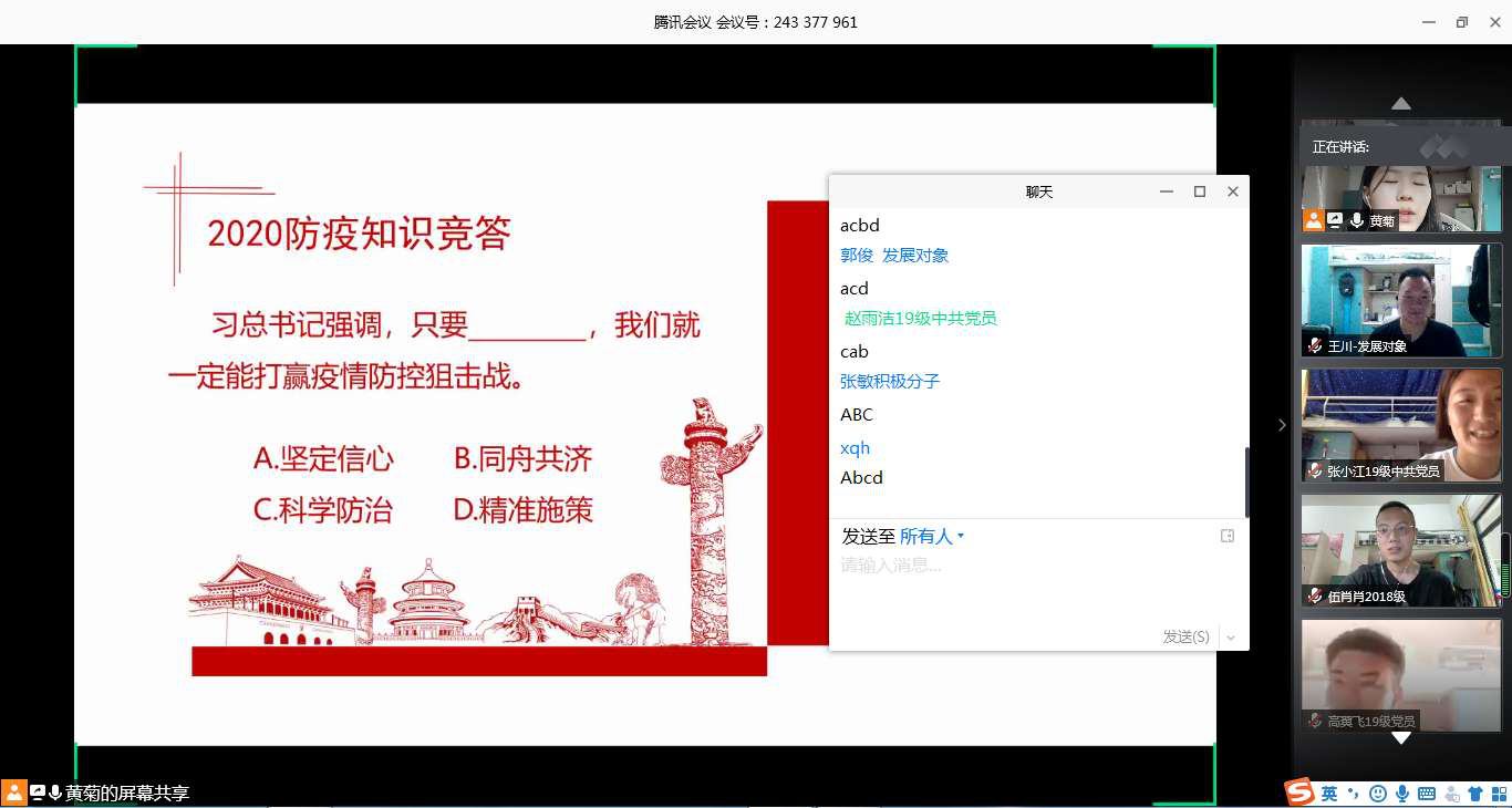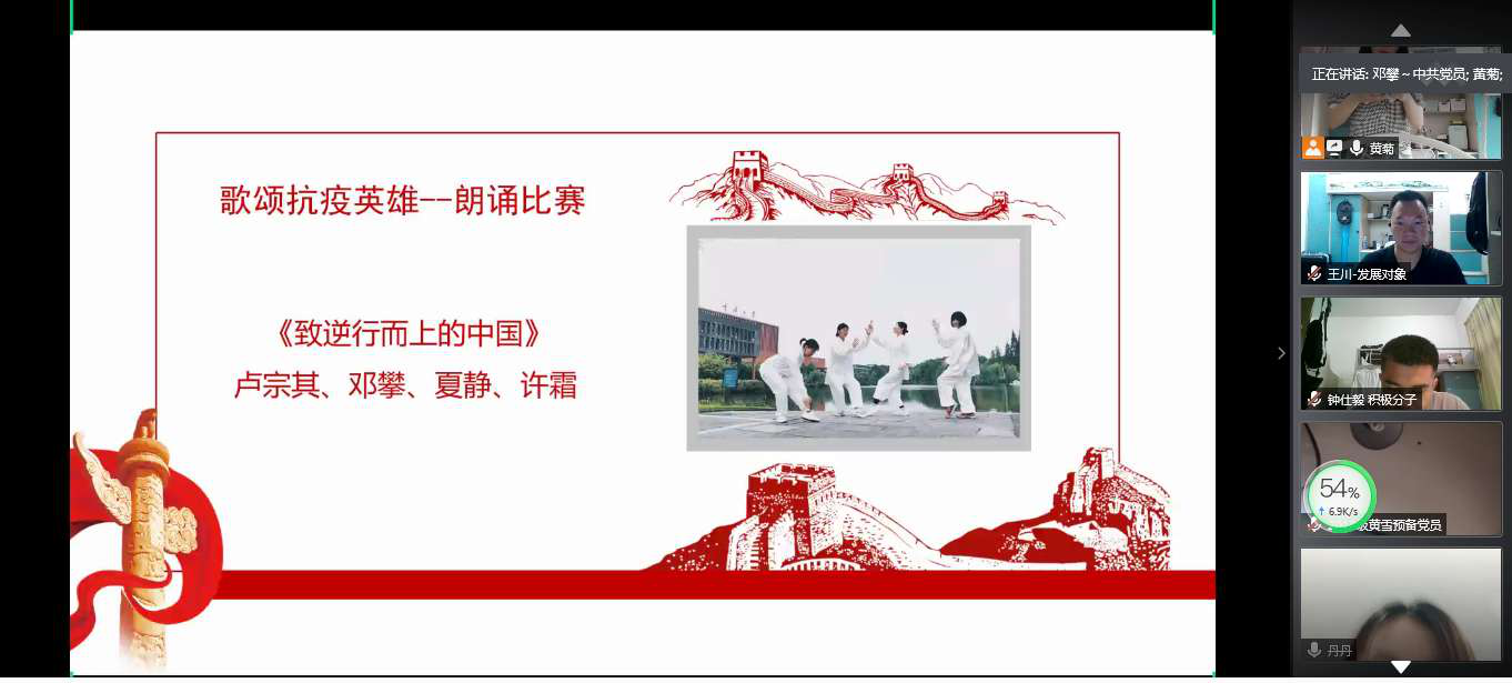 研究生党支部通过腾讯会议线上举办了主题为“疫去春来颂逆行英雄,有为青年赴时代征程”的特色党团活动。