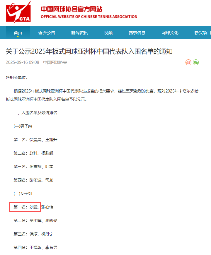 历史上首位入选国家级板式网球项目的学生运动员,也是我校体育育人成果在新兴项目上的又一次突破。