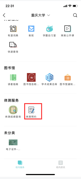 (1)进入体测预约服务,如图所示: