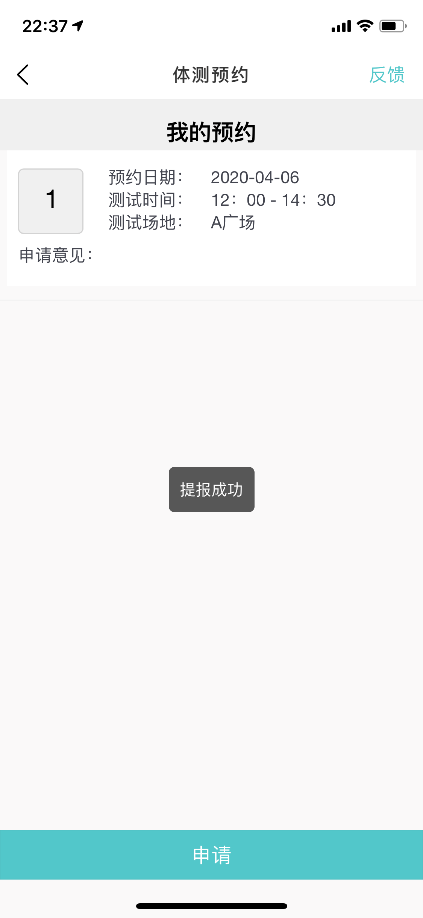 (5)进入体测预约,进入我的预约,点击申请,填写联系方式,选择校区以及预约时间,注意此处只能选择下周的时间,如图所示: