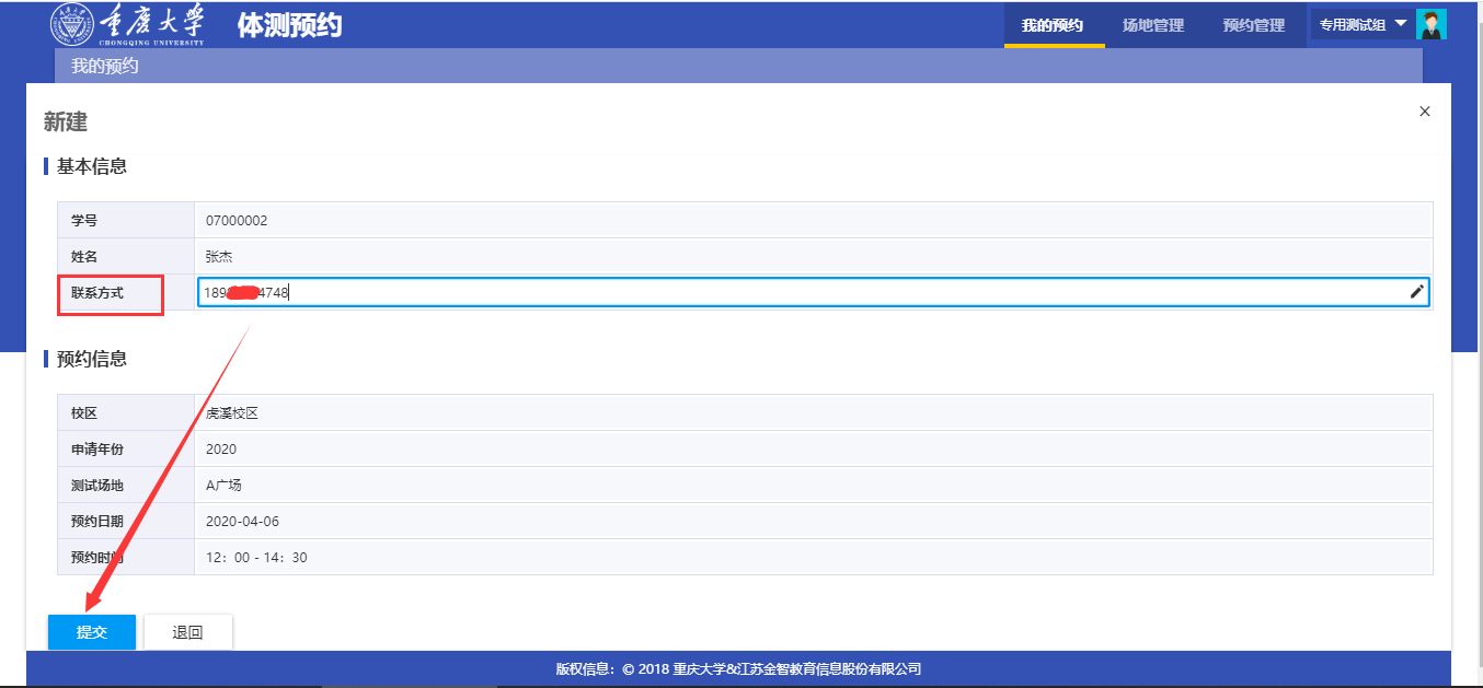 2.我的预约使用对象:需要体测的学生